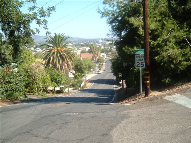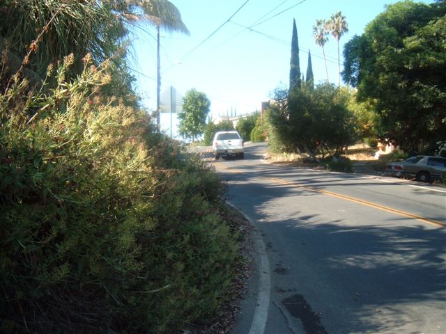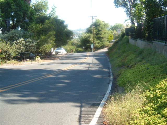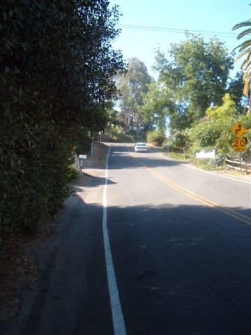Looking up the hill we just walked down. While there is a shoulder, it is hardly a safe walkway.